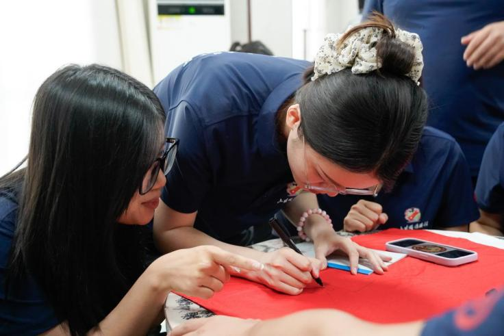 楊思老師圍繞“三灣改編”開展教學(xué),通過講解與情景再現(xiàn)相結(jié)合的方式,深刻闡述了“黨指揮槍”原則作為事業(yè)成功根本保證的重要性。在實(shí)踐環(huán)節(jié),各小組化身“紅軍班”,民主推選班長、安全員、宣傳員、炊事員、衛(wèi)生員,集思廣益繪制班旗,精心構(gòu)思班名、口號(hào)與班歌。在任務(wù)推進(jìn)過程中,增強(qiáng)了團(tuán)隊(duì)凝聚力,為后續(xù)實(shí)踐注入精神動(dòng)力。