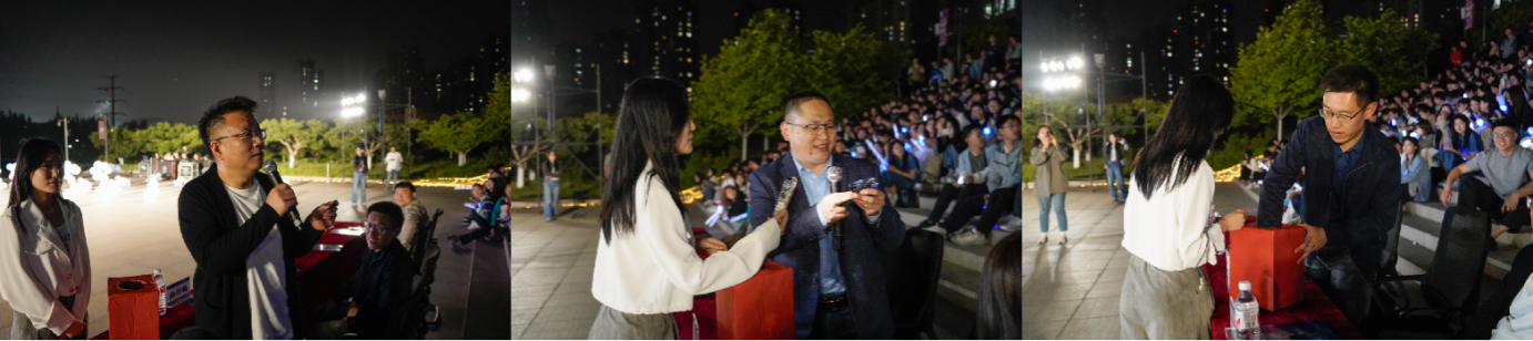 本次晚會精心設(shè)置了抽獎環(huán)節(jié),一等獎為返鄉(xiāng)車票,寓意著祝福畢業(yè)生展翅高飛,開始全新的人生旅程;二等獎是精美行李箱,它將見證畢業(yè)生承載著希望,踏上新的征程;三等獎為精美充電寶,祝愿畢業(yè)生在未來遇到困難,可以隨時從這三年的知識中獲取力量;以及幸運獎50份。初釗鵬、劉建波、薛鵬三位老師分別以抽取門票副券的方式進(jìn)行現(xiàn)場抽獎,最終成功抽出一等獎兩名、二等獎六名、三等獎四名。另外,通過彈幕抽獎的方式產(chǎn)生豐厚的幸運獎,將晚會現(xiàn)場氛圍推向一輪又一輪的高潮。