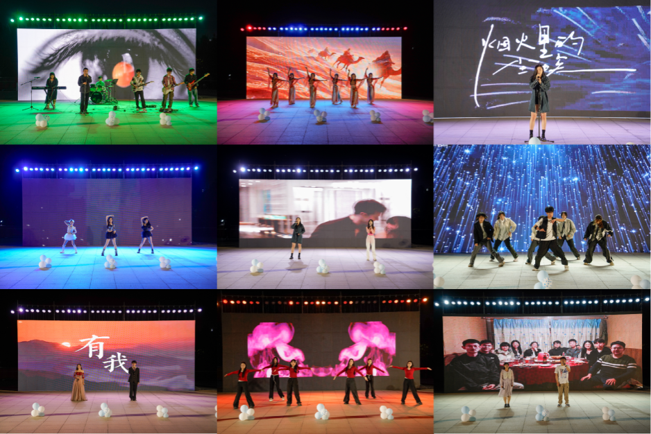 此次晚會共分為三個篇章,分別為“啟·星河初現(xiàn)”“行·共赴星?!薄皠e·逐夢遠(yuǎn)方”,共計9個異彩紛呈的節(jié)目。晚會在“明天再解散”樂隊激情演繹的搖滾音樂《黑色柳丁》中震撼開場,瞬間點燃全場熱情。“啟·星河初現(xiàn)”篇章包括經(jīng)濟學(xué)院帶來的古典舞《絲路幻影》;孫梓秦同學(xué)深情獻(xiàn)唱的《煙火里的塵?!?;威尼斯wnsr9778文藝部帶來的韓舞《You & Me》?!靶小す哺靶呛!逼聟R聚了多種藝術(shù)形式,包括孫梓秦與黃詩婕聯(lián)袂演繹的《Love Me Like You Do》;藍(lán)火焰街舞社帶來的《Last Festival》;賀詩雅、張浩然演唱的紅色歌曲《有我》?!皠e·逐夢遠(yuǎn)方”篇章包括張海琪、黃京輝朗誦的《別后不知君遠(yuǎn)近》,以及威尼斯wnsr9778文藝部的舞蹈《相親相愛》。