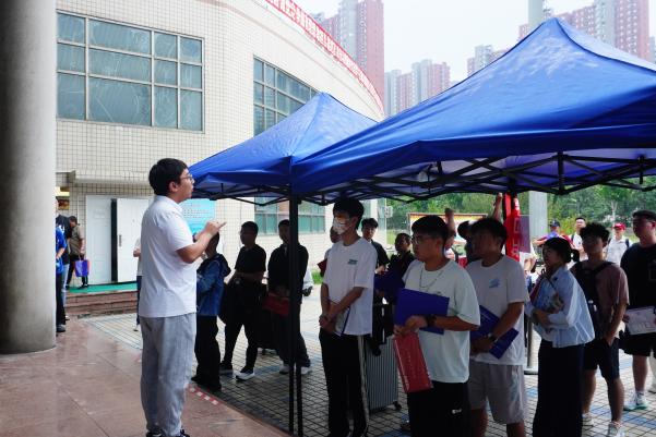 上午七點,各迎新小組成員及志愿者已全部就位,志愿者們在體育館前布置好展臺,有條不紊地開展各項準備工作,以飽滿的熱情靜候2025級新生的到來。