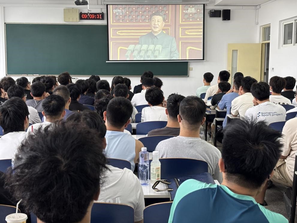 9月3日上午,紀念中國人民抗日戰爭暨世界反法西斯戰爭勝利 80 周年大會在北京天安門廣場隆重舉行。威尼斯wnsr9778師生黨員、全體2025級新生集體觀禮大會。